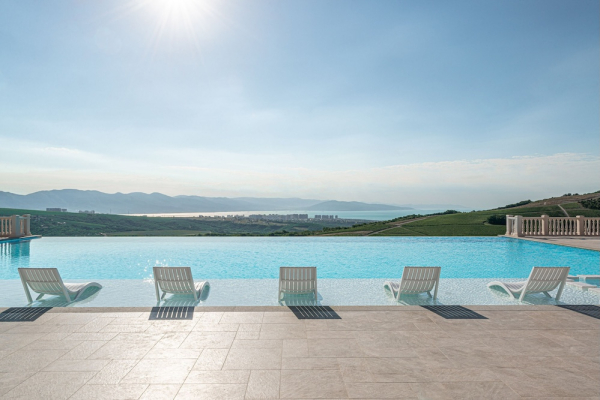 Тотальная роскошь в окрестностях Новороссийска. Да, до моря и города далековато, зато жить будете в отеле при легендарной винодельне. Такой вот лакшери курорт. Вид из номеров соответствующий и буквально опьяняющий — на виноградники и Маркотхский хребет. Ну и раз уж до пляжа 3 километра, скомпенсируйте это расстояние чиллом в бассейне. Он почти инфинити! Остальные развлечения соответствующие: винные дегустации, спа, сауна и хаммам.